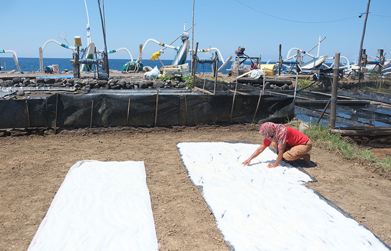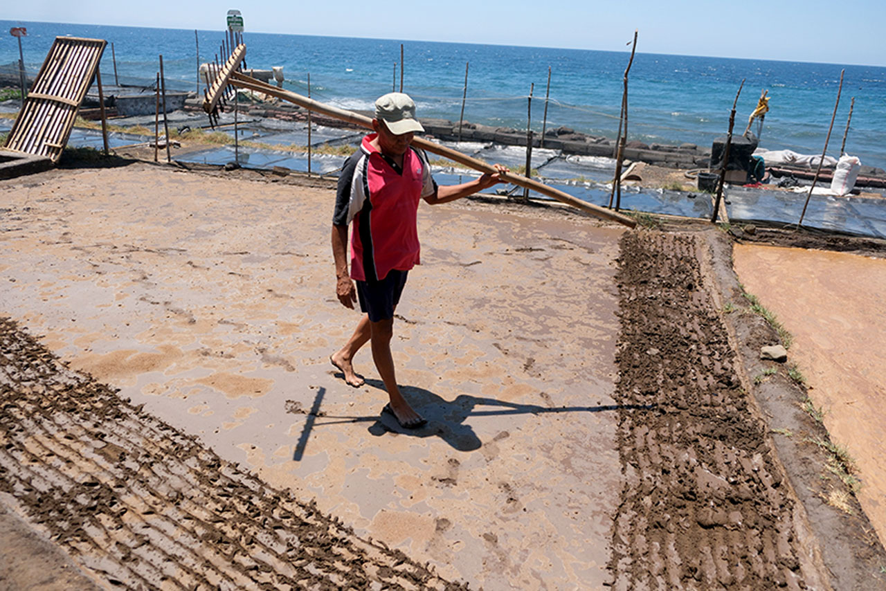 astakom.com, Buleleng – Petani garam tradisional, di Desa Les, Buleleng, Bali, Jumat (19/9). Petani garam di Desa Les setiap bulan Juni hingga Oktober, bisa memanen garam dengan harga jual Rp10 ribu hingga Rp15 ribu per kg, dan garam yang diproduksi di desa itu dijual ke jawa tengah dan Jakarta.