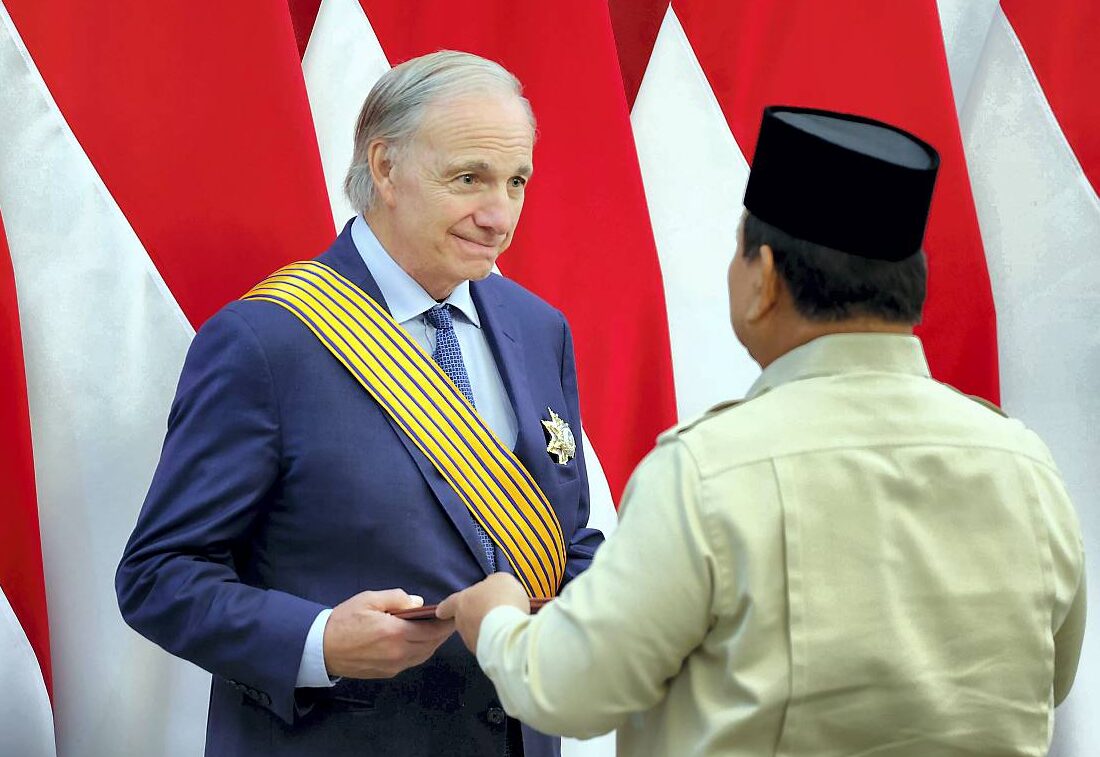 astakom.com, Jakarta – Presiden Prabowo Subianto menganugerahkan Bintang Tanda Jasa Utama kepada pengusaha asal Amerika Serikat (AS) Ray Dalio, di Istana Negara, Jakarta, Selasa (30/9). Ray Dalio merupakan pengusaha asal Amerika Serikat di bidang investasi.