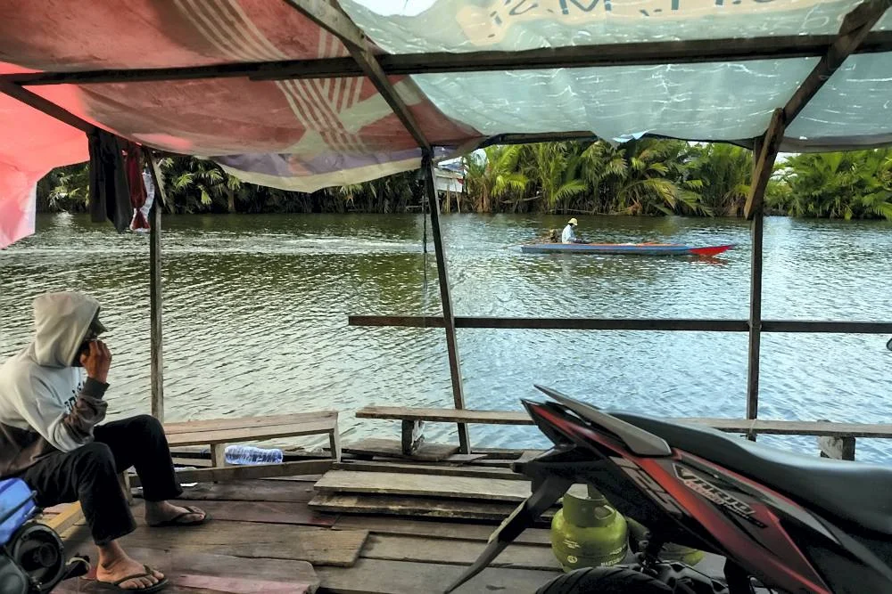 astakom.com, Makassar – Warga menggunakan jasa perahu penyeberangan untuk melintasi sungai, di Kecamatan Tallo, Makassar, Sulawesi Selatan, Minggu (5/10). Perahu penyeberangan yang beroperasi di Sungai Tallo untuk melayani warga yang membutuhkan transportasi cepat melewati sungai tersebut, khususnya dari dan ke Pulau Lakkang.