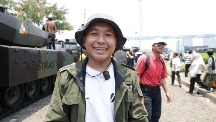 astakom, Jakarta – Masyarakat sipil antusias hadiri HUT ke-80 Tentara Nasional Indonesia (TNI) di Silang Monas, Jakarta, Senin (5/10). Agus Irawan yang berprofesi sebagai Driver Ojek Online (ojol) mengaku bangga dan mendukung penuh kinerja dari TNI.