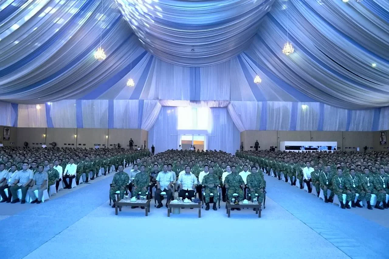 astakom.com, Jakarta – Presiden Prabowo Subianto memberikan pengarahan kepada Komandan Satuan (Dansat) TNI, di Halim Perdanakusuma, Jakarta, Senin (6/9). Pengarahan tersebut diikuti ratusan Perwira Tinggi (Pati) TNI tiga Matra hingga Perwira Menengah (Pamen).