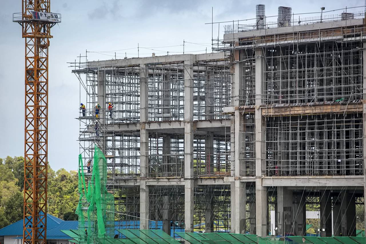 astakom.com, Batam – Sejumlah pekerja menyelesaikan pembangunan salah satu gedung Data Center, di Kawasan Ekonomi Khusus (KEK) Nongsa, Batam, Kepulauan RIau, Rabu (8/10). Badan Pengusahaan (BP) Batam mencatat hinga saat ini terdapat 18 pusat data center yang akan beroperasi di Batam.
